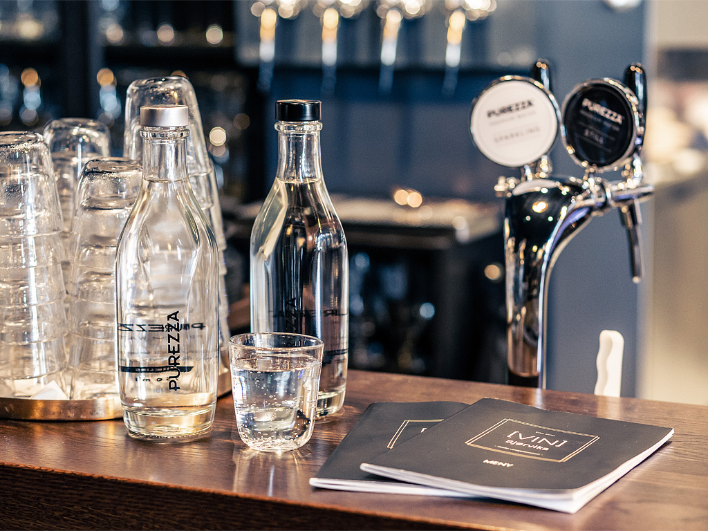 Med både Thoreau och Purezza får du tillgång till obegränsat med friskt, kylt, kolsyrat eller stilla vatten. En tekniker kommer och ansluter Waterlogics utrustning till befintlig vattenledning på din restaurang, och sedan tappar du enkelt och snabbt upp vatten i snygga flaskor.