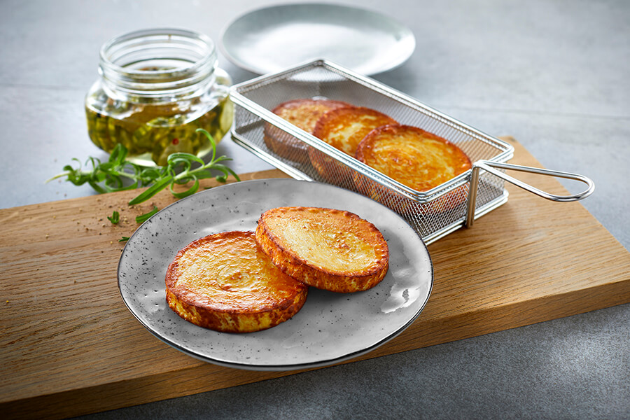 - Grilling Cheese går utmärkt att skära med skärmaskin för att få jämna skivor.Fritera