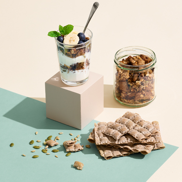 - Servera granolan med yoghurt eller fil, gärna toppat med bär.
