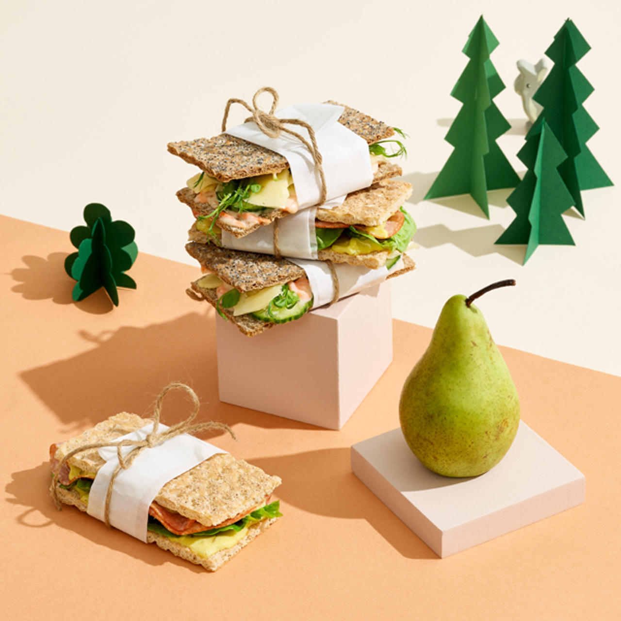 - Lägg därefter på den andra knäckebrödskivan som en dubbelmacka.
