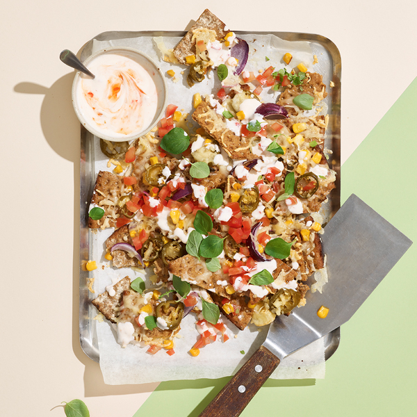 - Lägg upp knäckenachos på tallrikar och servera med dippsås i en skål vid sidan av.