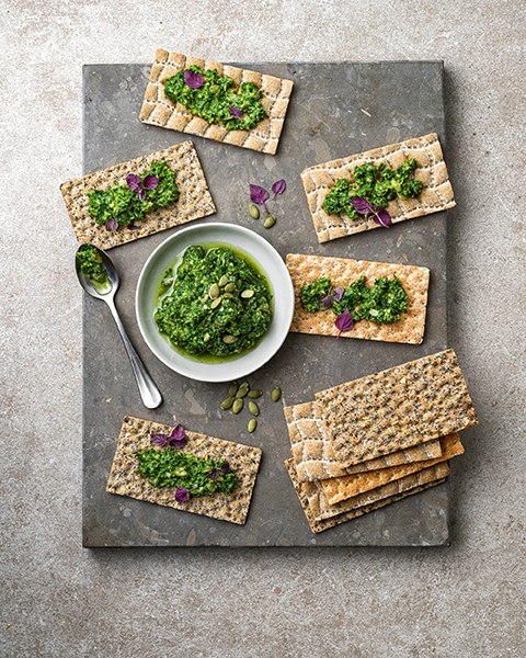 - Bred ut på knäckebrödskivorna.