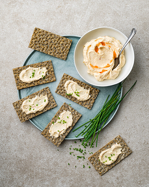 Varsågod, här bjuder vi på fyra goda och inspirerande röror som passar bra med vårt knäckebröd – antingen som komplement eller som ett mättande mellanmål.