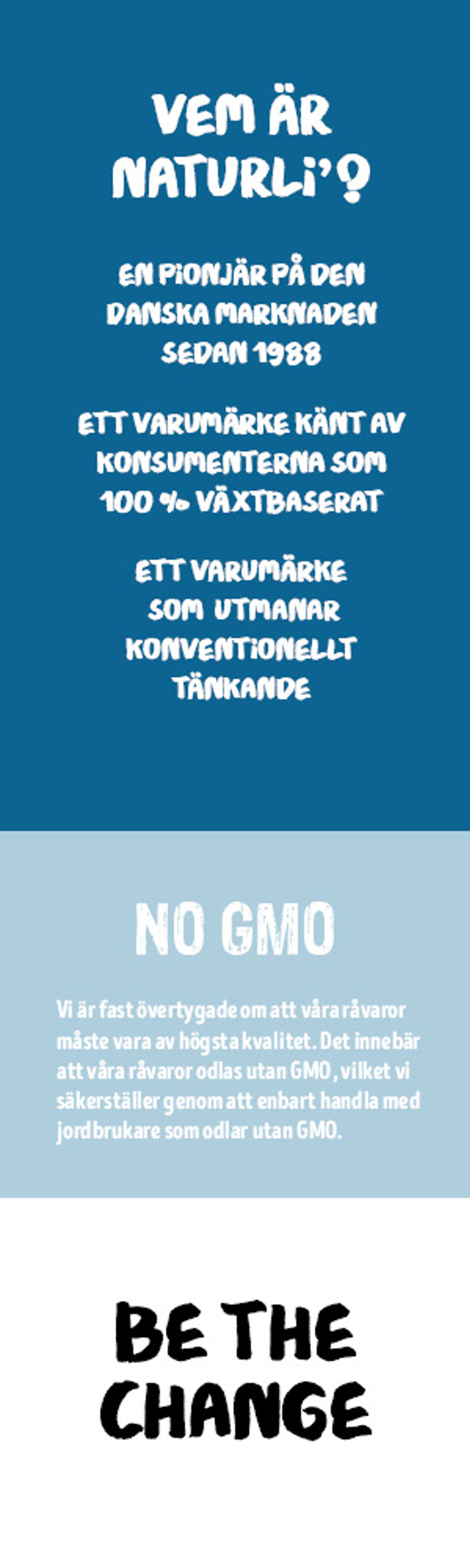Byggstenarna för Naturli’ är lika enkla som de är självklara. Det är alltid 100% god smak, 100% växtbaserat, lätt att använda och balans mellan natur och människa som gäller. Oavsett vilken produkt vi tar fram.Högkvalitativa råvaror