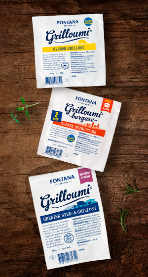 Ända sedan Fontana introducerade halloumi i Sverige på 80-talet har vi drömt om att utveckla en ost efter eget familjerecept. Familjen bakom Fontana kommer från Cypern, men har också rötter i Grekland. Vi började med en grekisk Grilloumi 2010. På senare år har efterfrågan på svensk ost ökat både hos våra kunder och konsumenter, och vi såg oss om efter en bra samarbetspartner. Nu finns Fontana Svensk Grilloumi®, en lokalproducerad grillost gjord av norrländsk komjölk hos Norrmejerier. Osten är gjord på ungefär samma sätt som halloumi, vilket ger den liknande egenskaper vad gäller smak, användningsområden och tillagningssätt. För enkelhetens skull finns den både som hel bit och som ostburgare – färdigformade, fyrkantiga skivor.