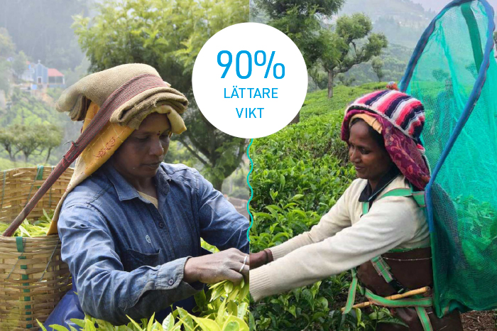 Vi på Tekompaniet vill bidra till att teplockare och anställda har bra arbets- och levnadsvillkor. Vi stödjer olika projekt som syftar till att lyfta människor till ett bättre liv. 2-3 gånger om året besöker vi våra leverantörer och deras plantager och fabriker. Vi genomför regelbundna intervjuer med teplockare och fabriksarbetare för att säkerställa att alla arbetar under rättvisa förhållanden. Nu har vi köpt 350 lättviktskorgar till teplockarna på plantagen i Blue Mountains, Indien. Vi har bytt ut tunga och otympliga korgar som bärs med huvudrem till lätta ryggsäckskorgar med hög ’krage’ för att enkelt kasta tebladen över axeln. De traditionella bambukorgarna väger 4 kg och lättviktskorgarna väger endast 400 g.