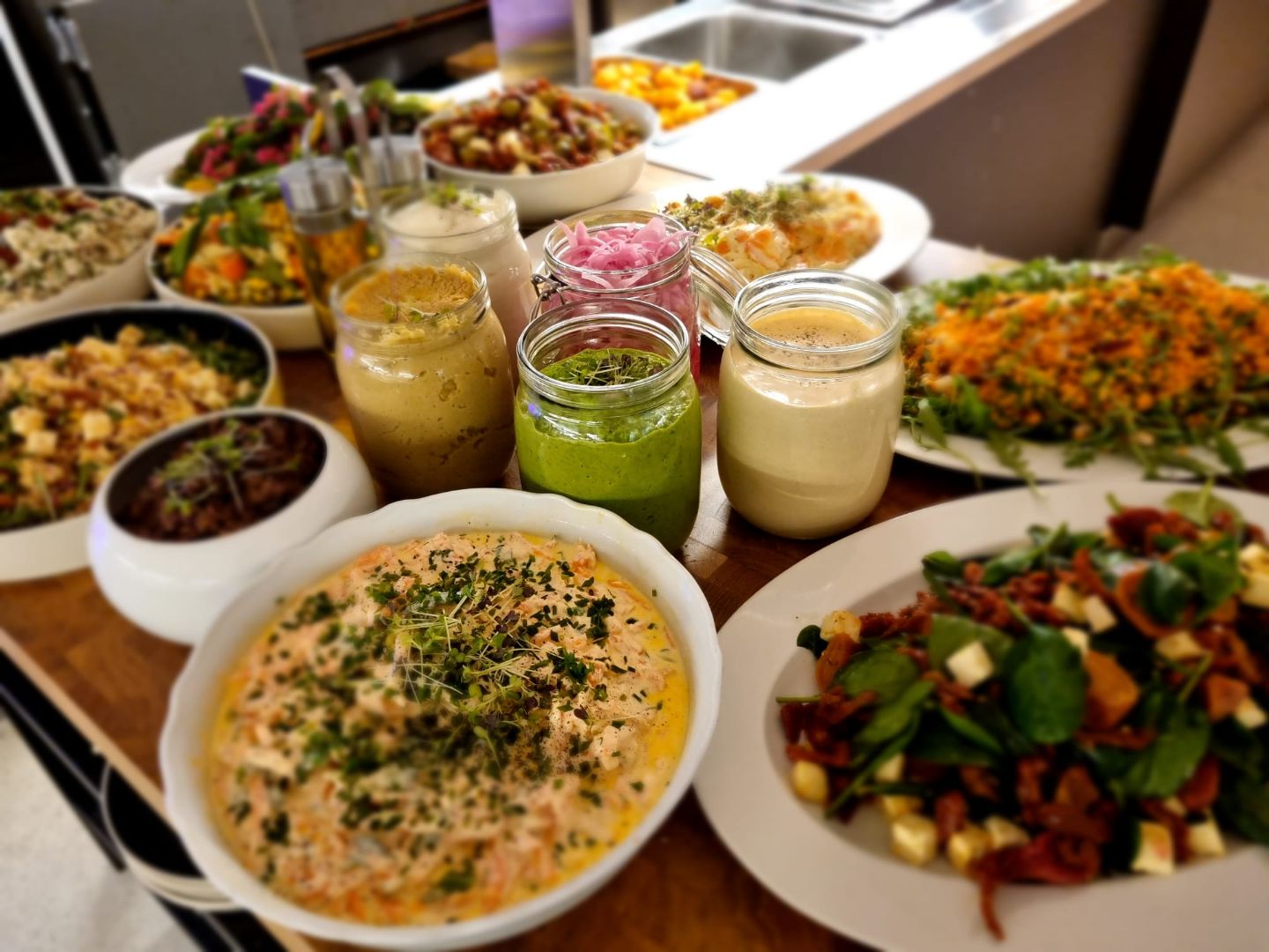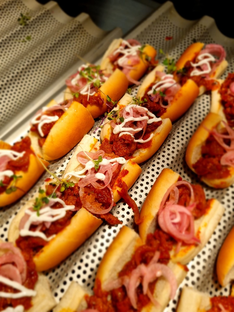 Han och kockarna skapade ett vegetariskt rum i matsalen och tillsammans kreerade de fram en inbjudande plats för att väcka elevernas nyfikenhet. Väggarna målades om, ny belysning sattes upp i armeringsjärn och rekvisita från second hand skapade den rätta restaurangkänslan.
