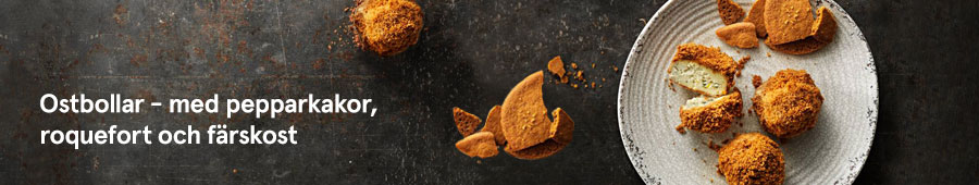 Det är till exempel uppskattat med alternativ för dem som av olika anledningar inte äter klassiska bakverk. Ett tips är då att erbjuda till exempel nötter, ost och torkad frukt. Eller att göra dessa goda ostbollar med härliga julsmaker från pepparkaka och roquefort. Receptet är framtaget av Eva Vilhelmsson.